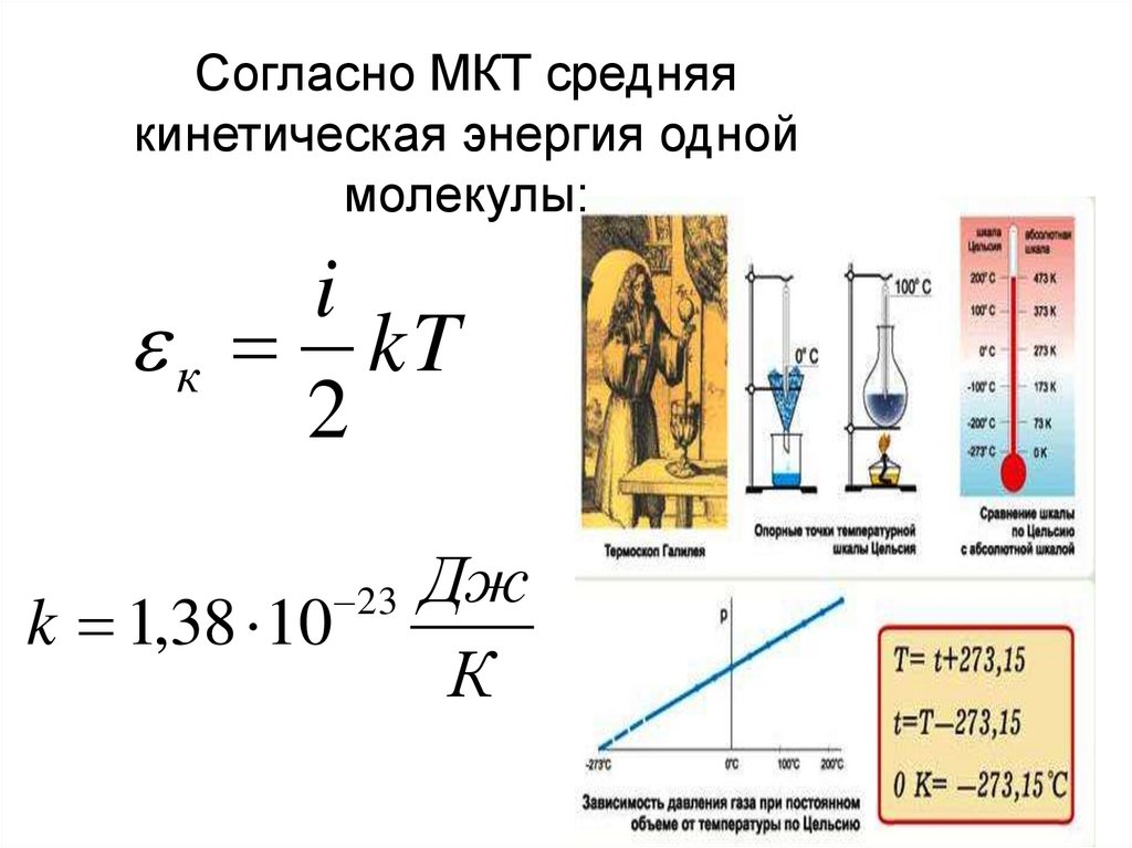 Согласно МКТ средняякинетическая энергия одной