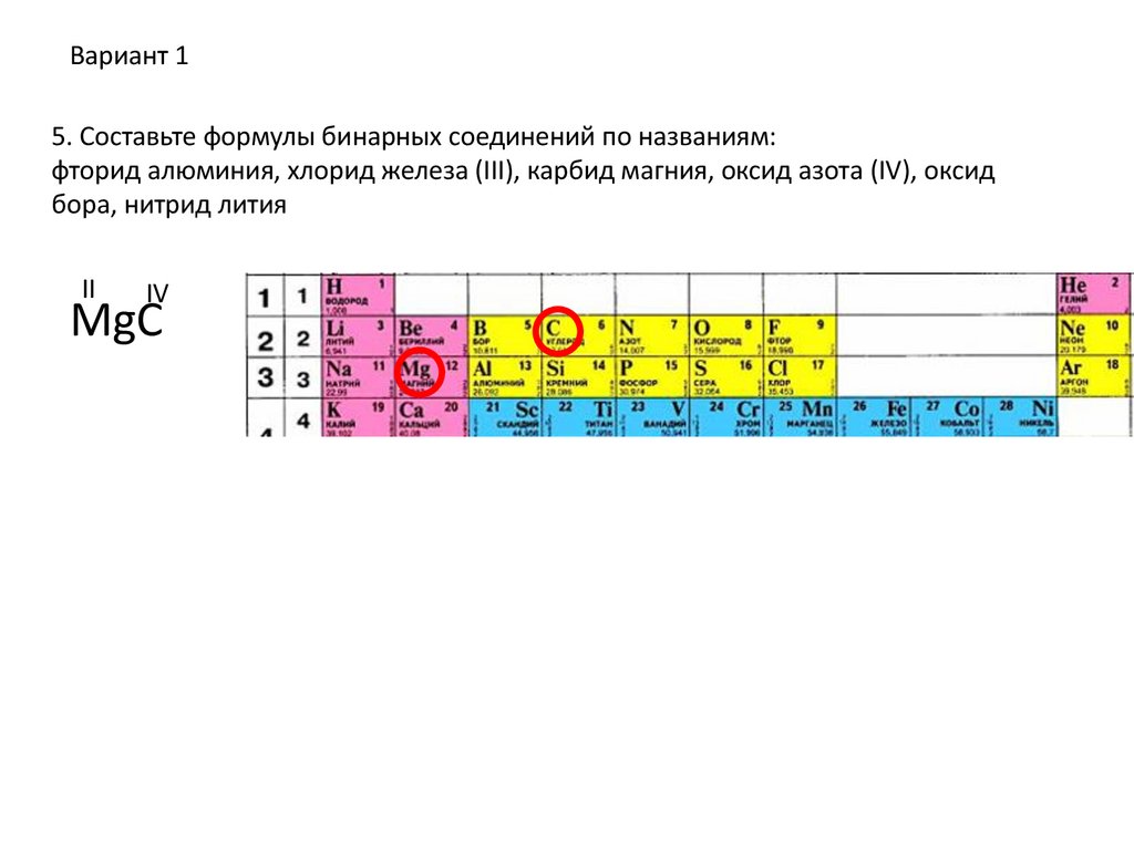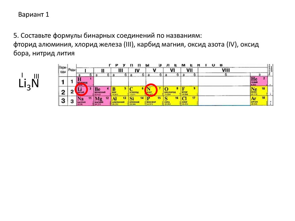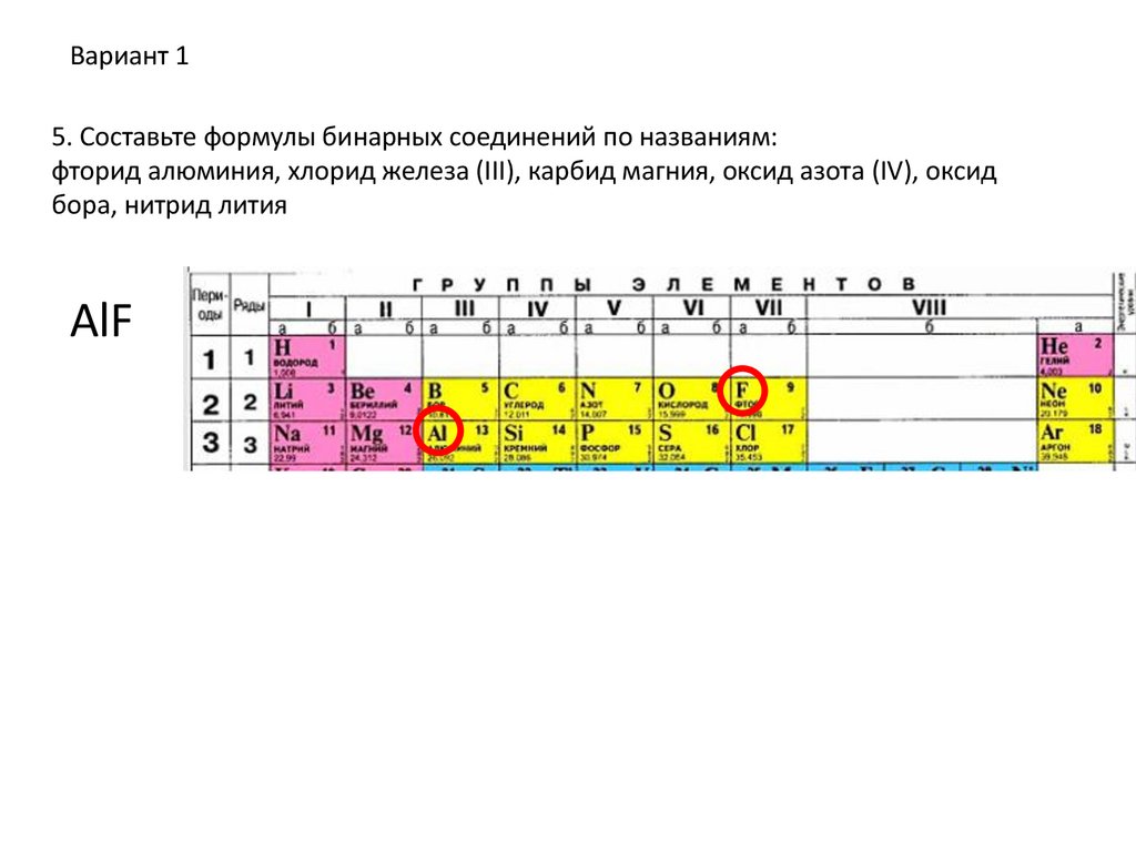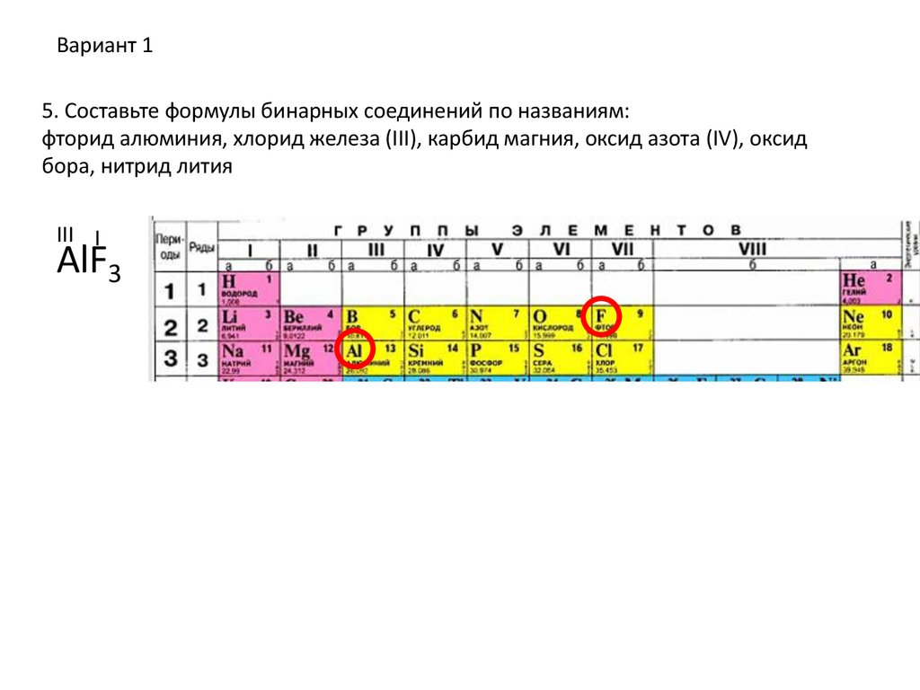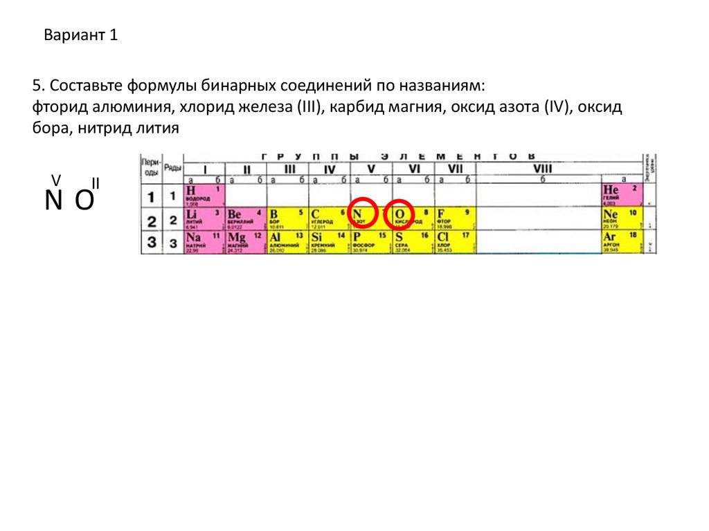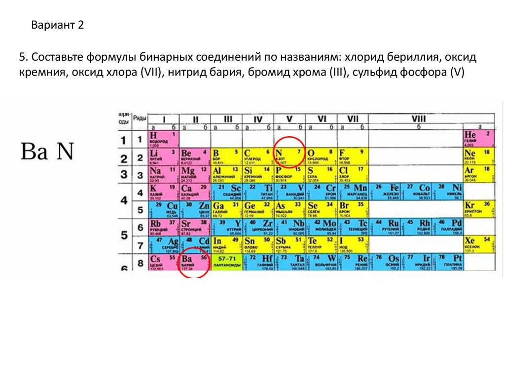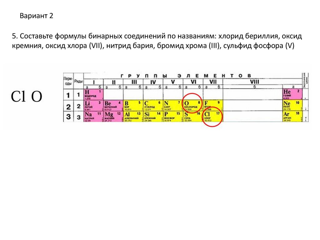 Вариант 15. Составьте формулы бинарных соединений по названиям: