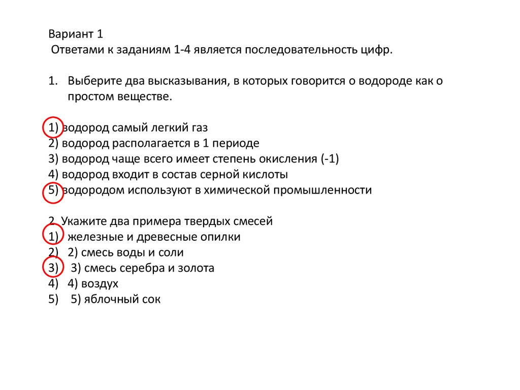 Вариант 1Ответами к заданиям 1-4 является последовательность цифр.