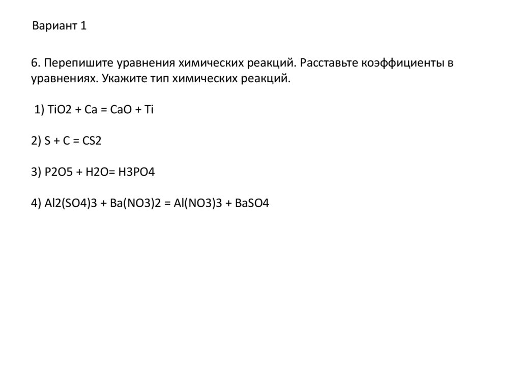 Вариант 16. Перепишите уравнения химических реакций. Расставьте коэффициенты в