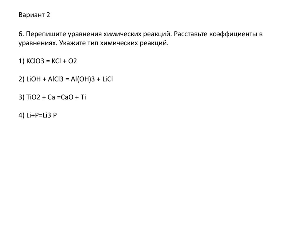 Вариант 26. Перепишите уравнения химических реакций. Расставьте коэффициенты в