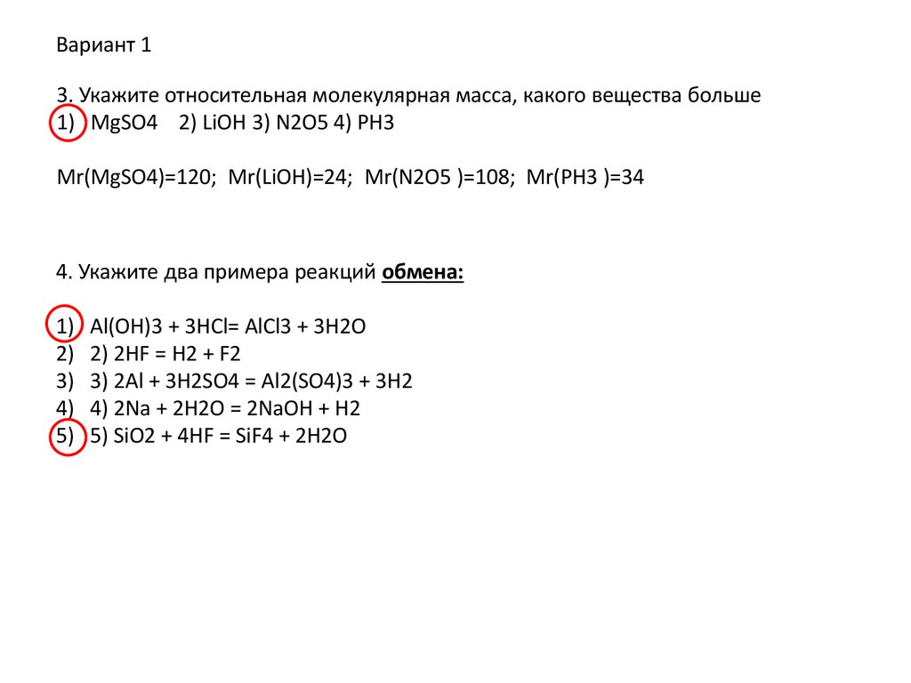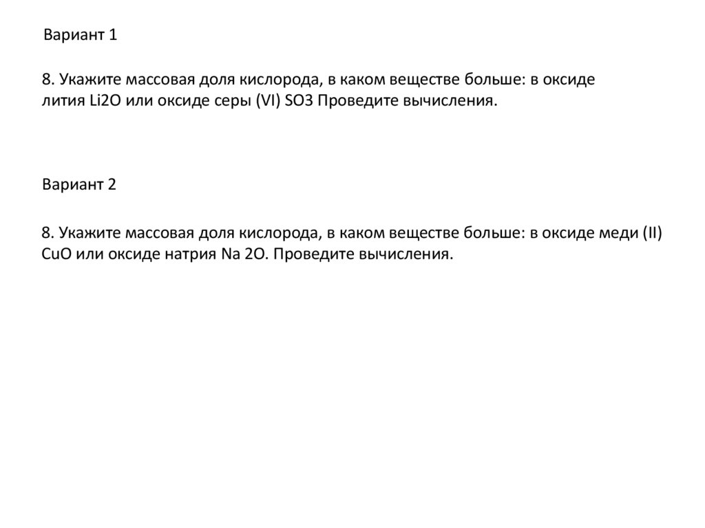 Вариант 18. Укажите массовая доля кислорода, в каком веществе больше: в оксиде