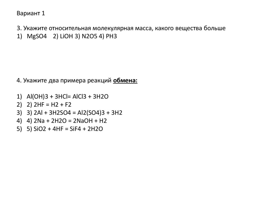 4. Укажите два примера реакций обмена: