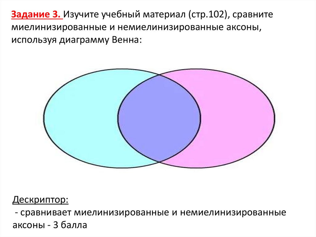 Задание 3. Изучите учебный материал (стр.102), сравнитемиелинизированные и немиелинизированные аксоны,