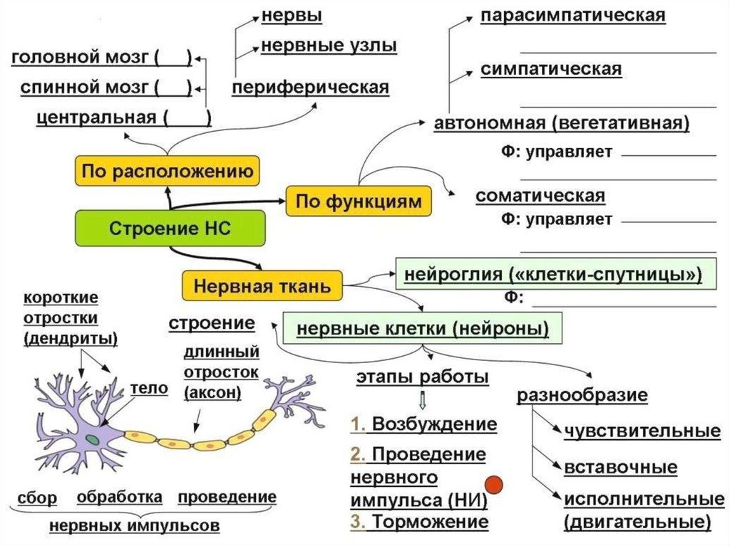 - основной компонент, из которого построена нервная система.Воспринимают раздражение,