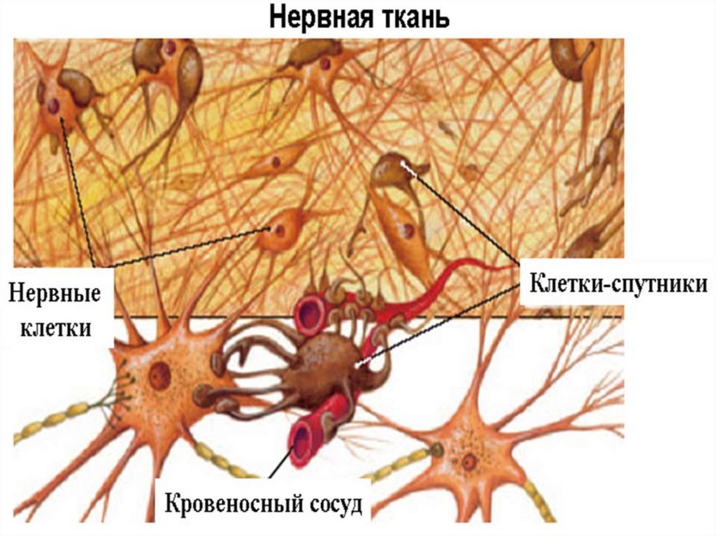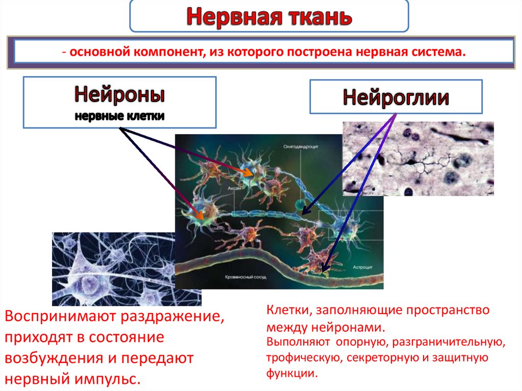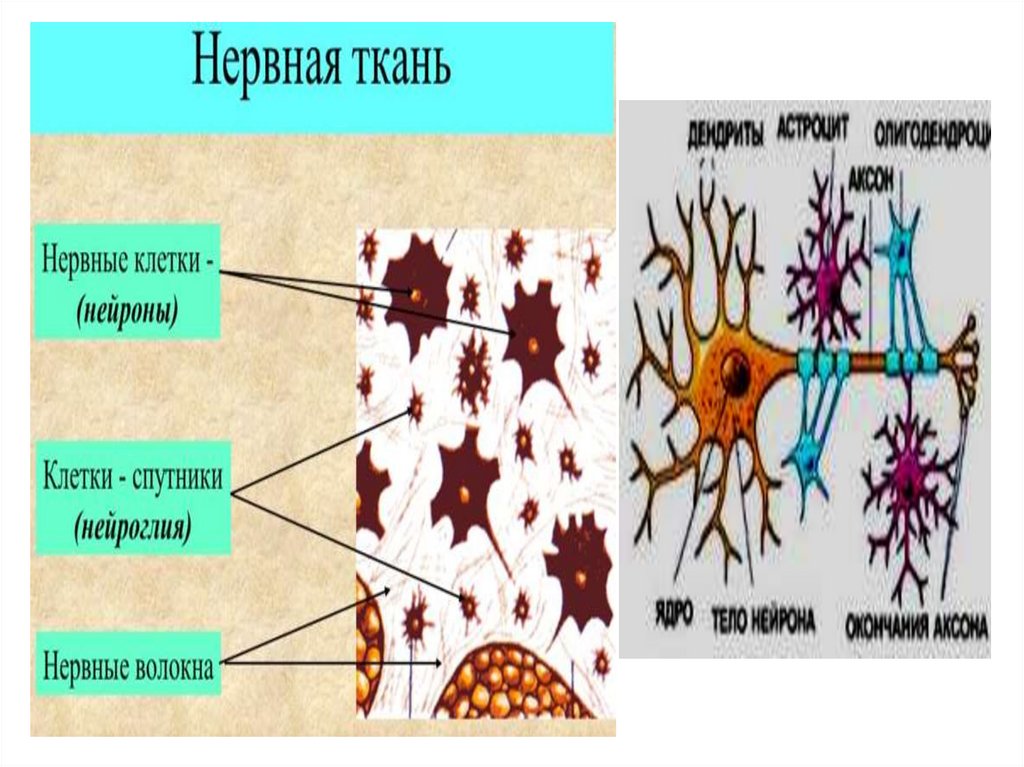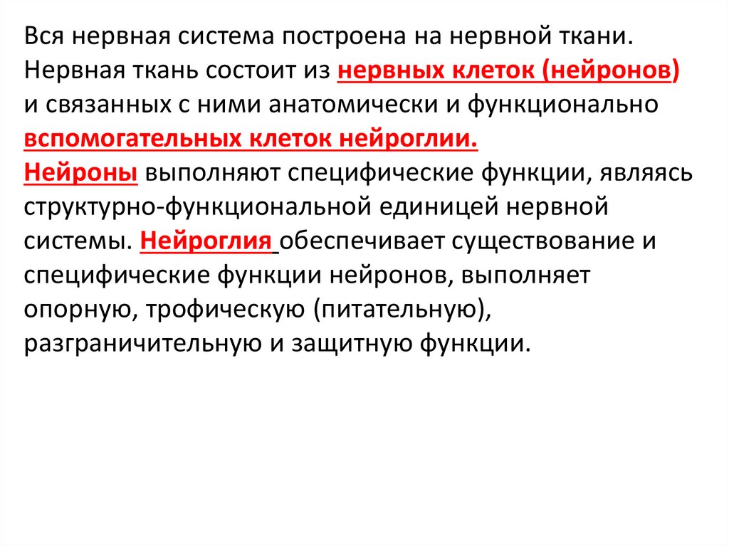 Вся нервная система построена на нервной ткани.Нервная ткань состоит из нервных клеток (нейронов)