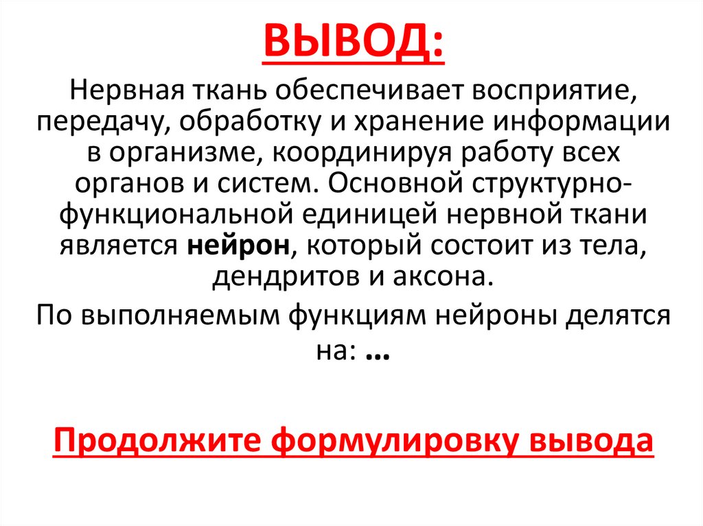 ВЫВОД:Нервная ткань обеспечивает восприятие,