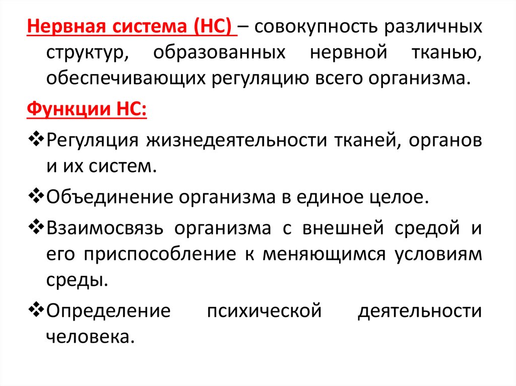 Нервная система (НС) – совокупность различныхструктур, образованных нервной тканью,