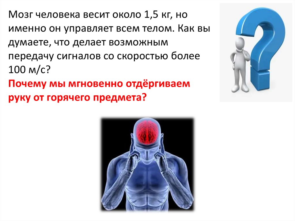 Мозг человека весит около 1,5 кг, ноименно он управляет всем телом. Как вы