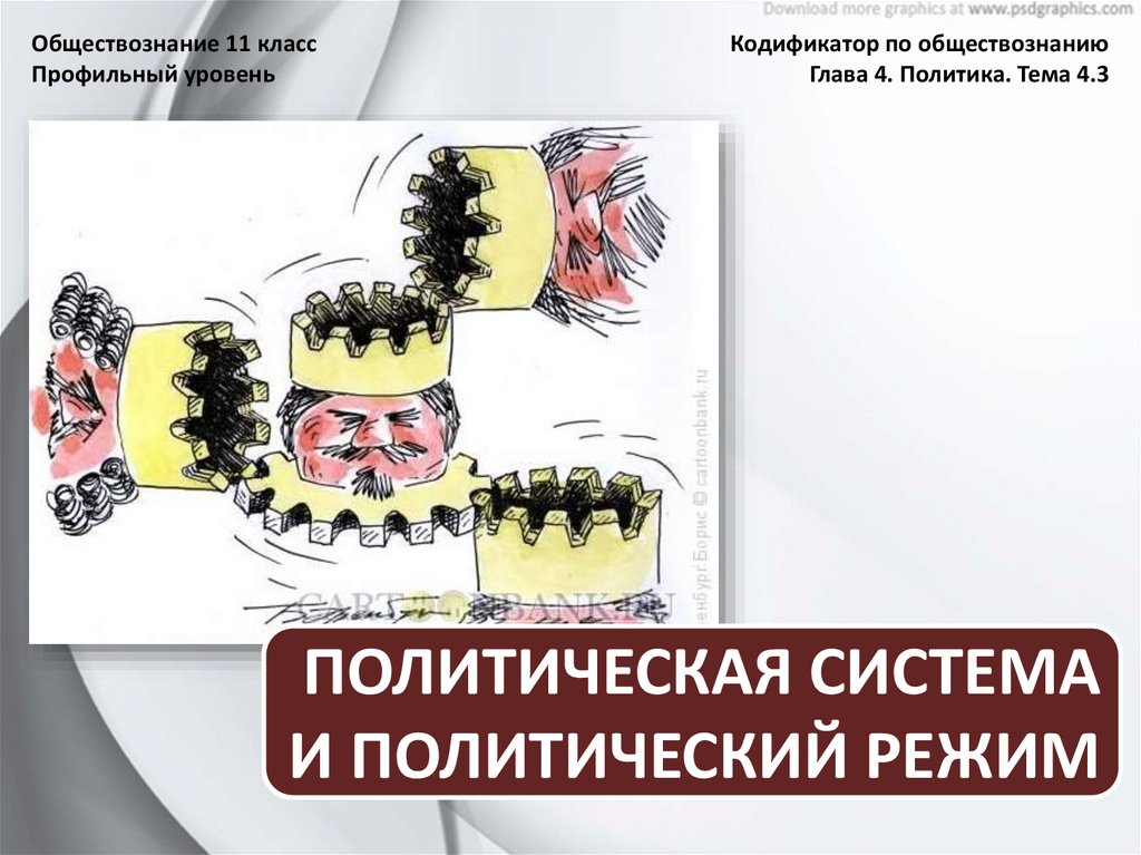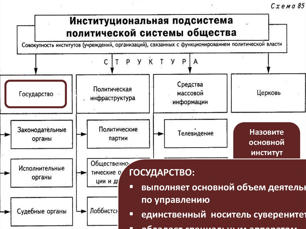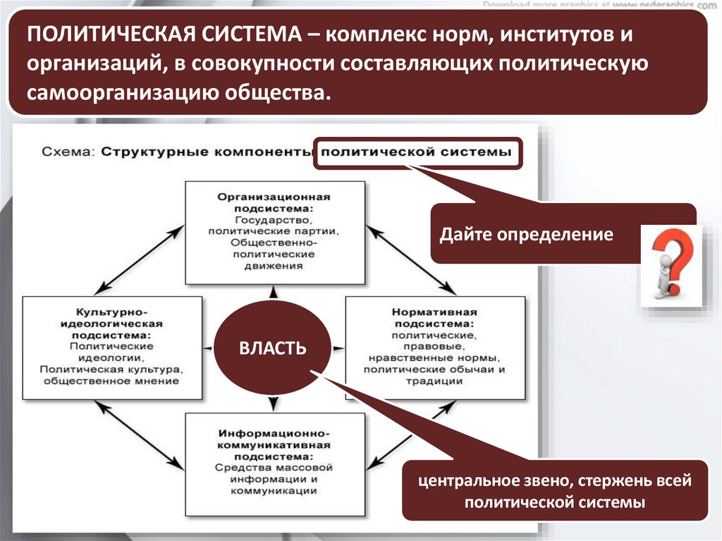 ПОЛИТИЧЕСКАЯ СИСТЕМА – комплекс норм, институтов иорганизаций, в совокупности составляющих политическую