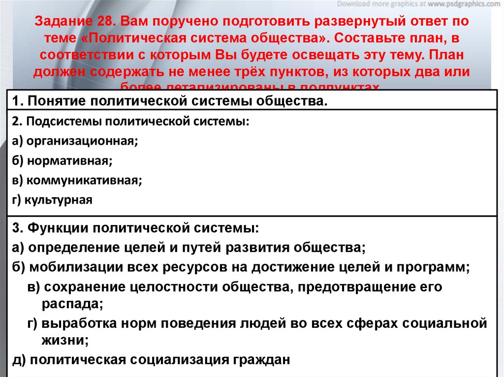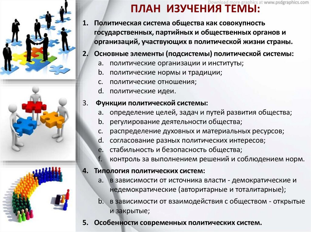 ПЛАН ИЗУЧЕНИЯ ТЕМЫ:1. Политическая система общества как совокупность