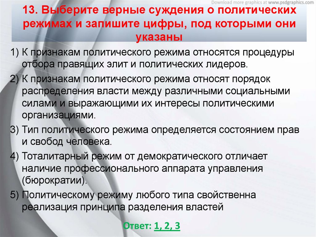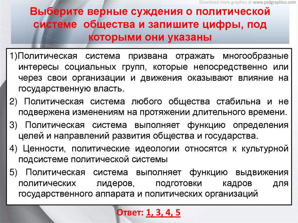 Выберите верные суждения о политическойсистеме общества и запишите цифры, под