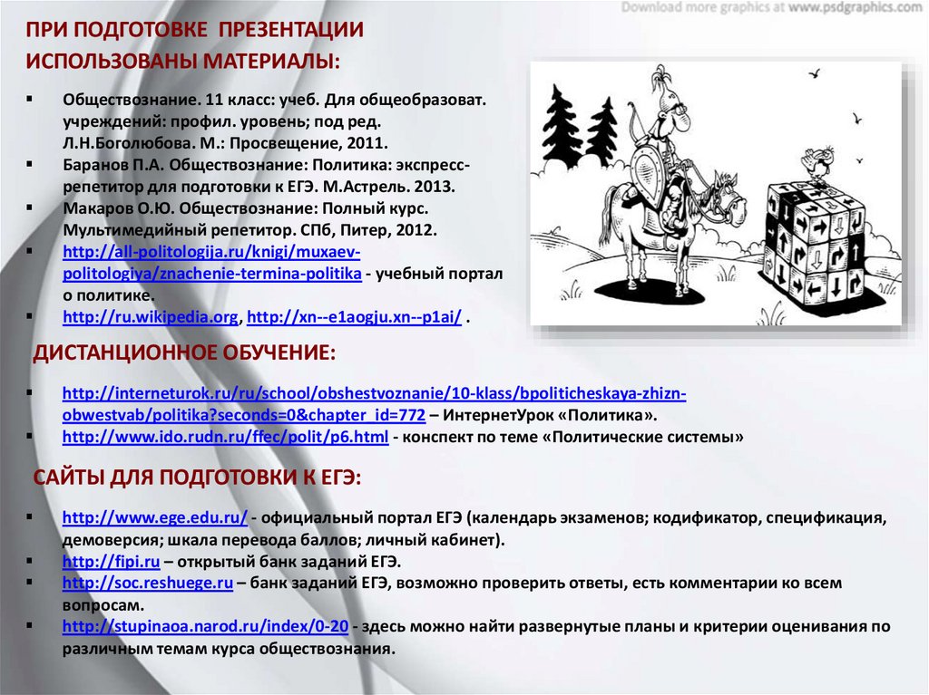 http://interneturok.ru/ru/school/obshestvoznanie/10-klass/bpoliticheskaya-zhiznobwestvab/politika?seconds=0&chapter_id=772 – ИнтернетУрок «Политика».