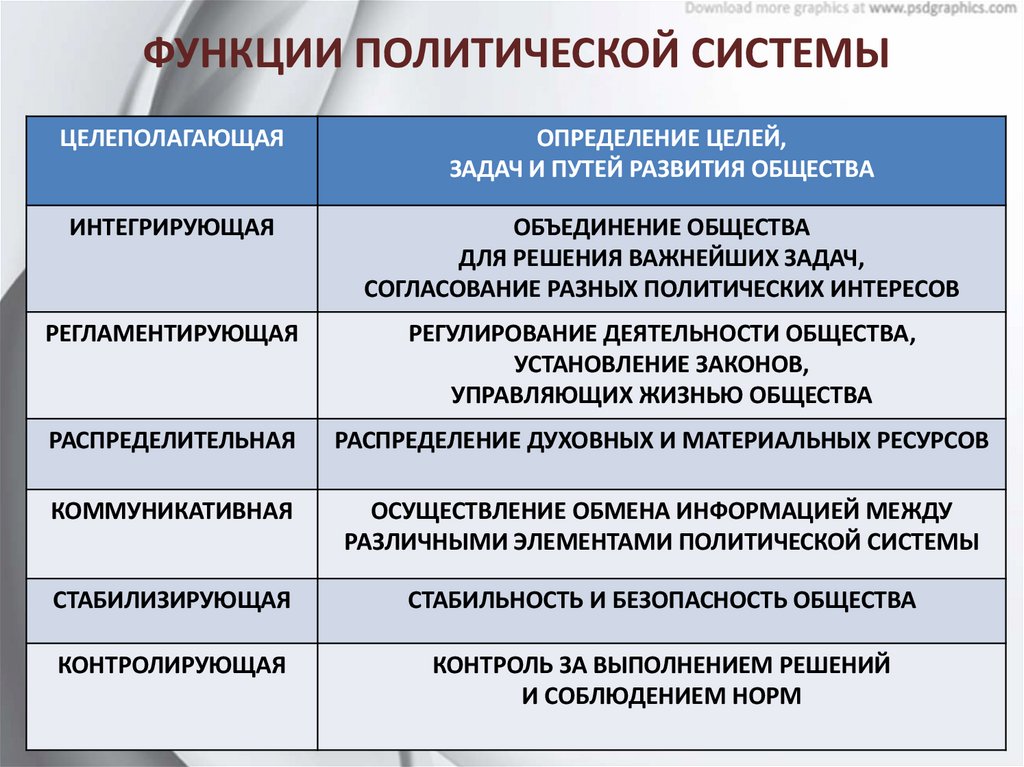 ФУНКЦИИ ПОЛИТИЧЕСКОЙ СИСТЕМЫЦЕЛЕПОЛАГАЮЩАЯ