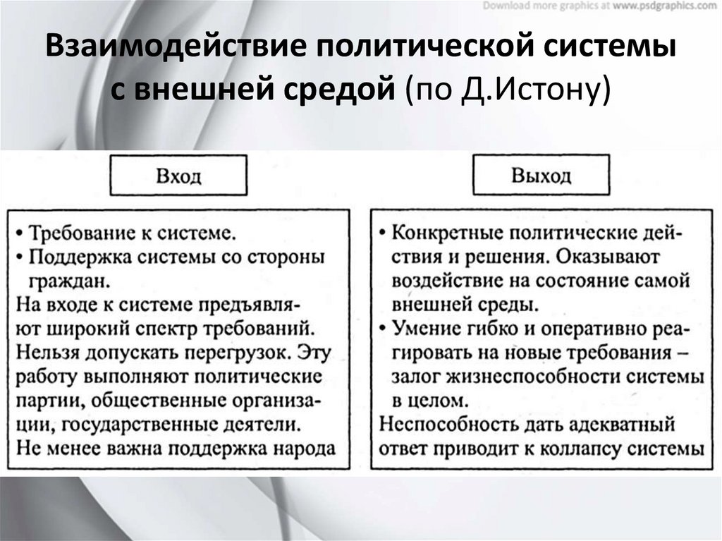 Взаимодействие политической системыс внешней средой (по Д.Истону)