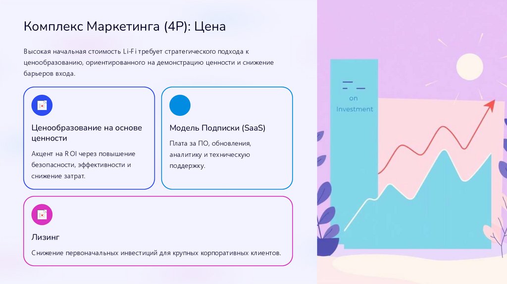 Комплекс Маркетинга (4P): ЦенаВысокая начальная стоимость Li-F i требует стратегического подхода к