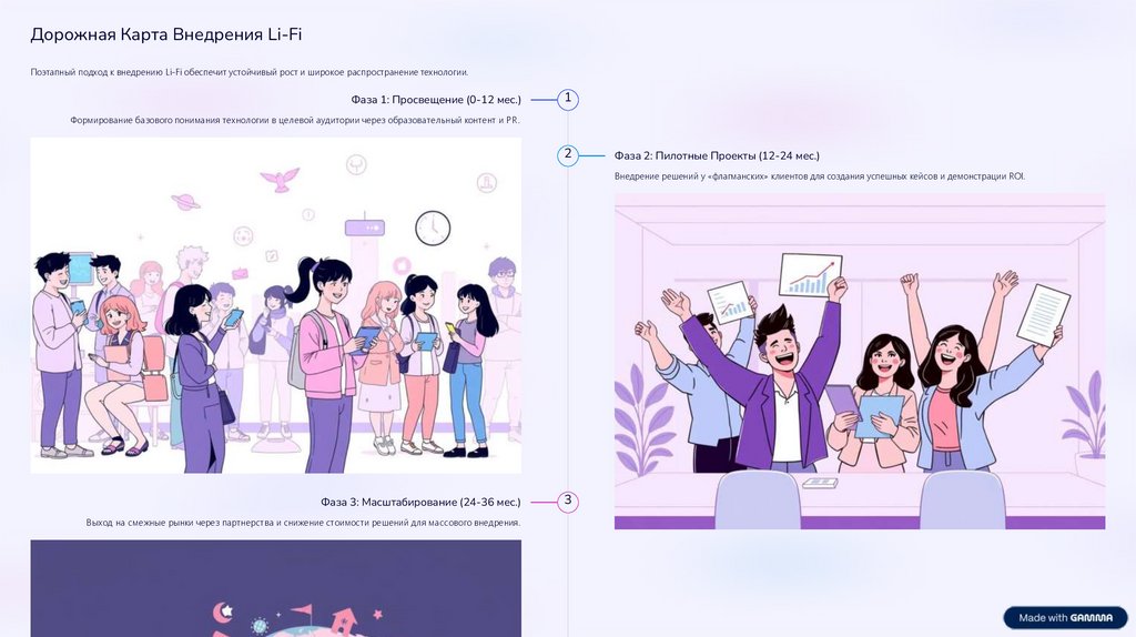 Дорожная Карта Внедрения Li-FiПоэтапный подход к внедрению Li-Fi обеспечит устойчивый рост и широкое распространение технологии.