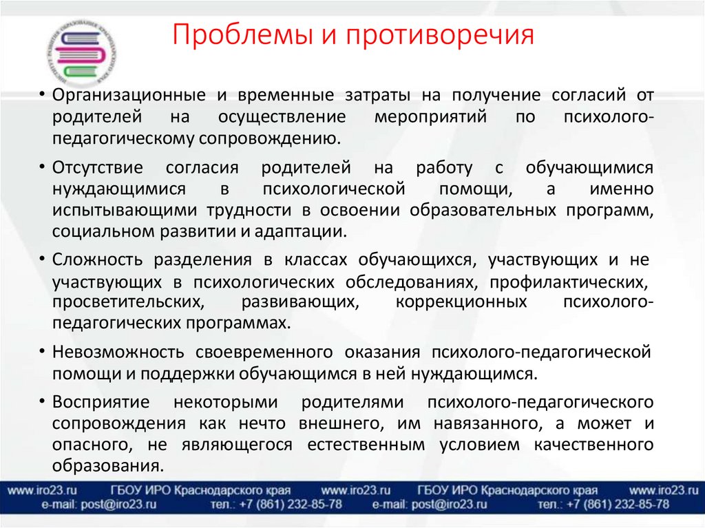 Проблемы и противоречия• Организационные и временные затраты на получение согласий от