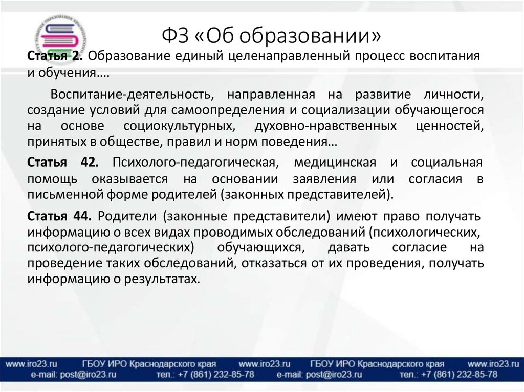 ФЗ «Об образовании»Статья 2. Образование единый целенаправленный процесс воспитания