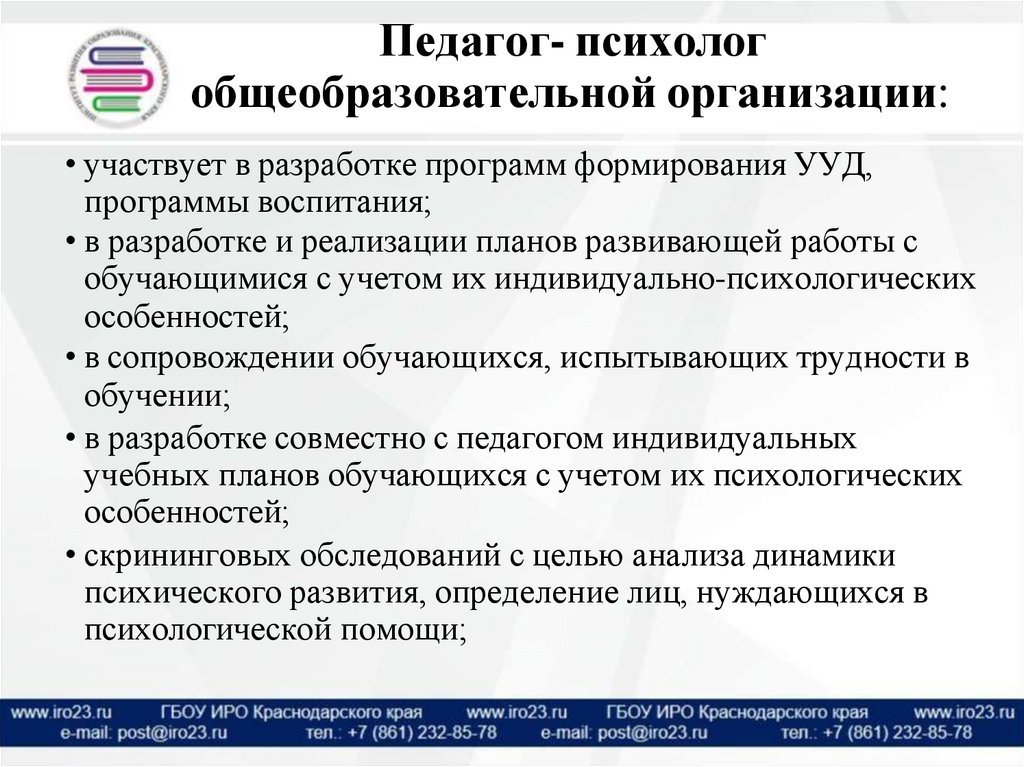 Педагог-психолог, наряду с учителямипредметниками, является специалистом,
