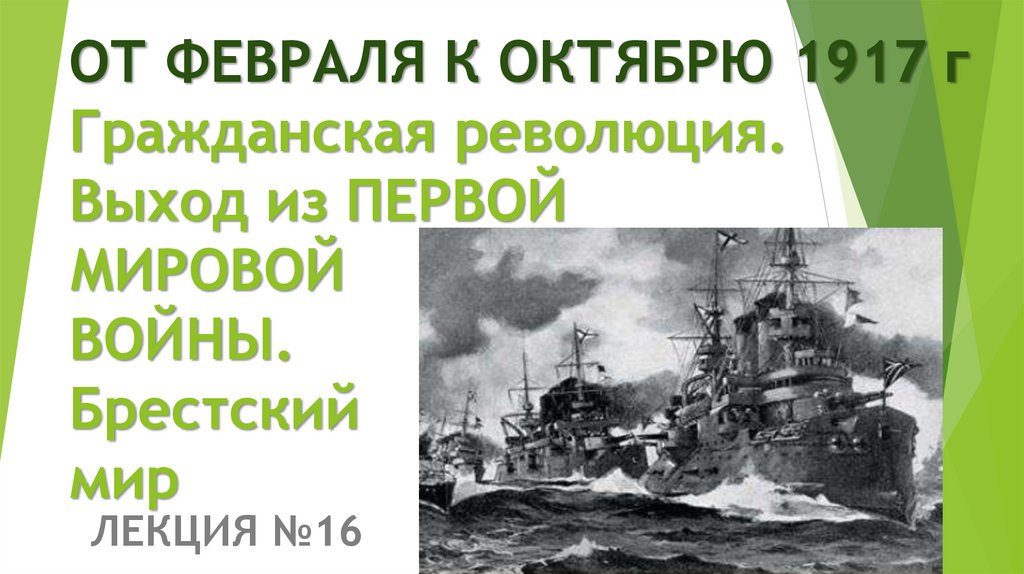 ОТ ФЕВРАЛЯ К ОКТЯБРЮ 1917 г Гражданская революция. Выход из ПЕРВОЙ МИРОВОЙ ВОЙНЫ. Брестский мир