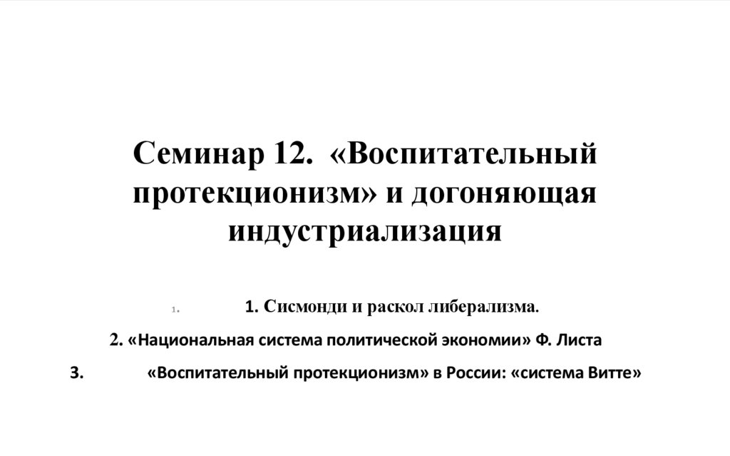 1. Семинар 12. «Воспитательный протекционизм» и догоняющая индустриализация