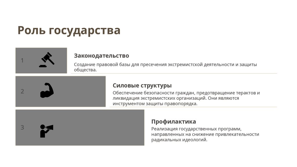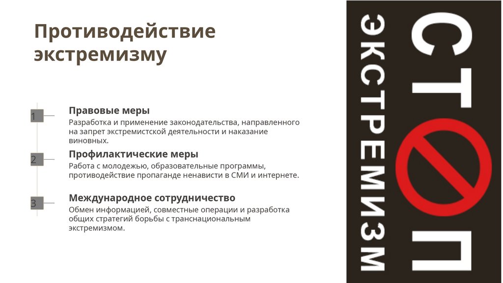 Создание правовой базы для пресечения экстремистской деятельности и защиты