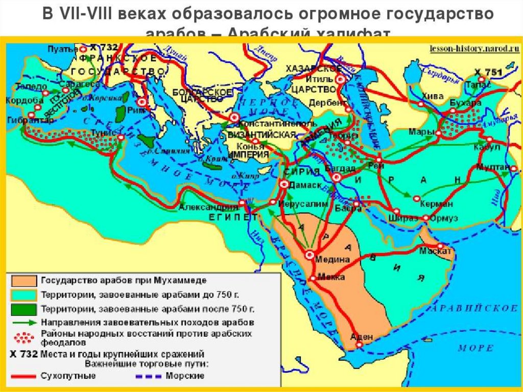 усилением значения морского пути.6. К VII в. у арабских племен наметилось разложение родоплеменных отношений