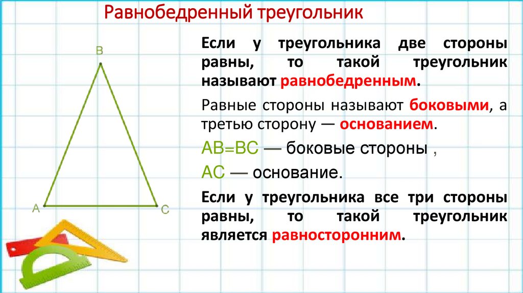Равнобедренный треугольникЕсли у треугольника две стороны