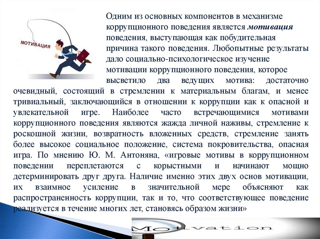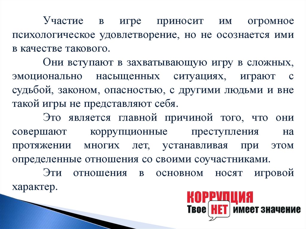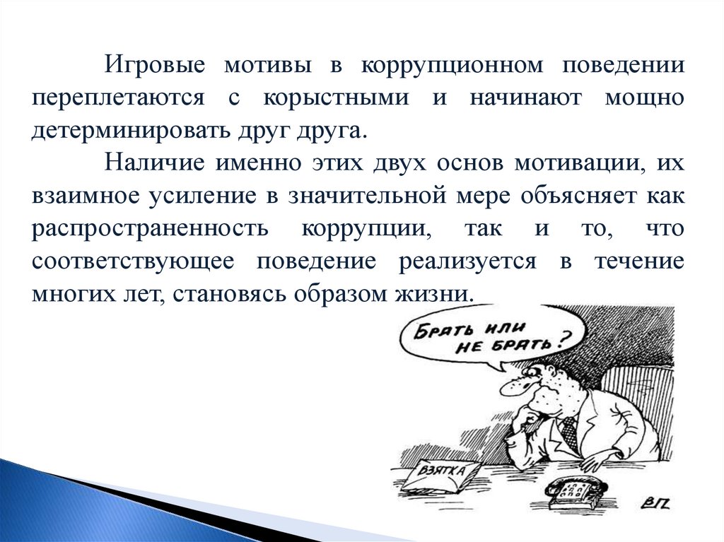 Игровые мотивы в коррупционном поведениипереплетаются с корыстными и начинают мощно