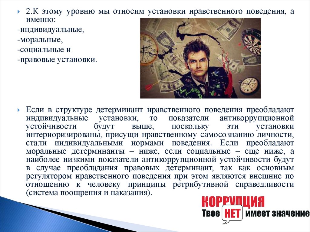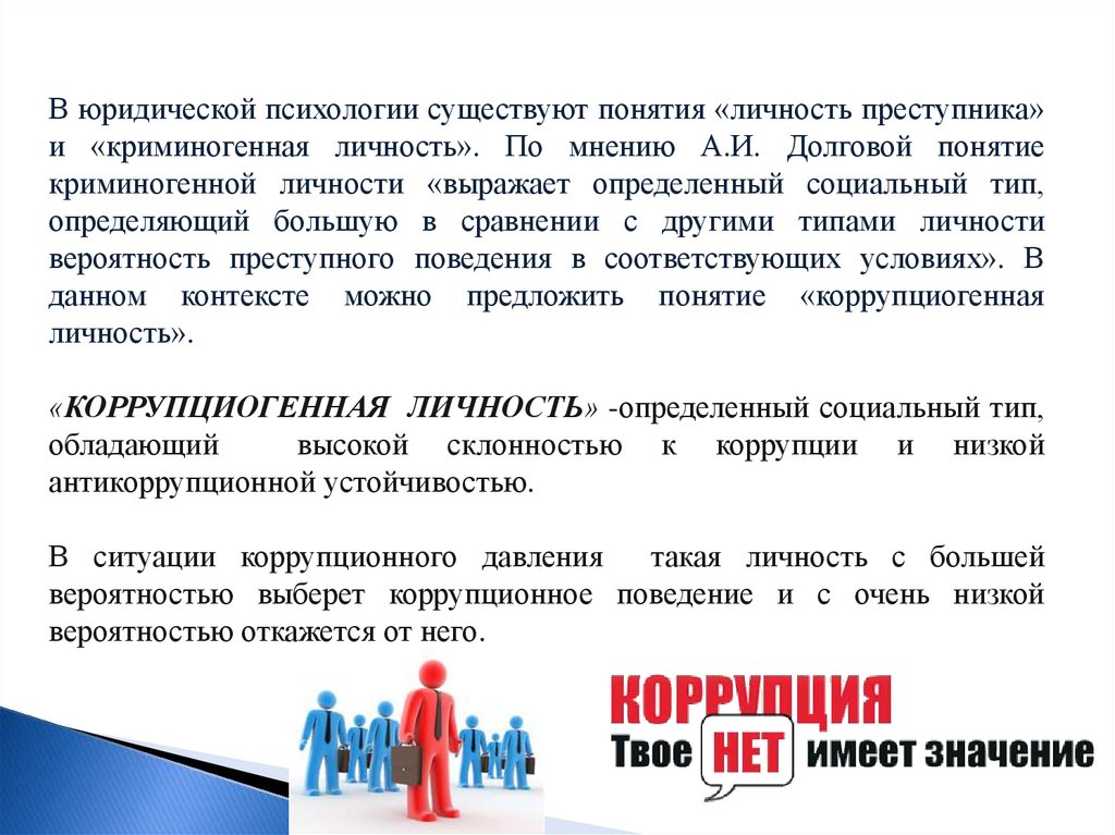 «антикоррупционная устойчивость» - это системное свойство личности,