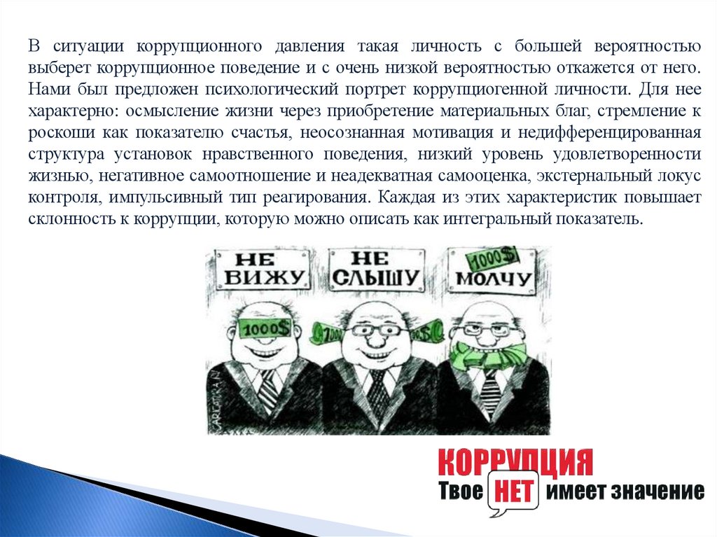 Вопрос 1. Психологические механизмыкоррупционного поведения
