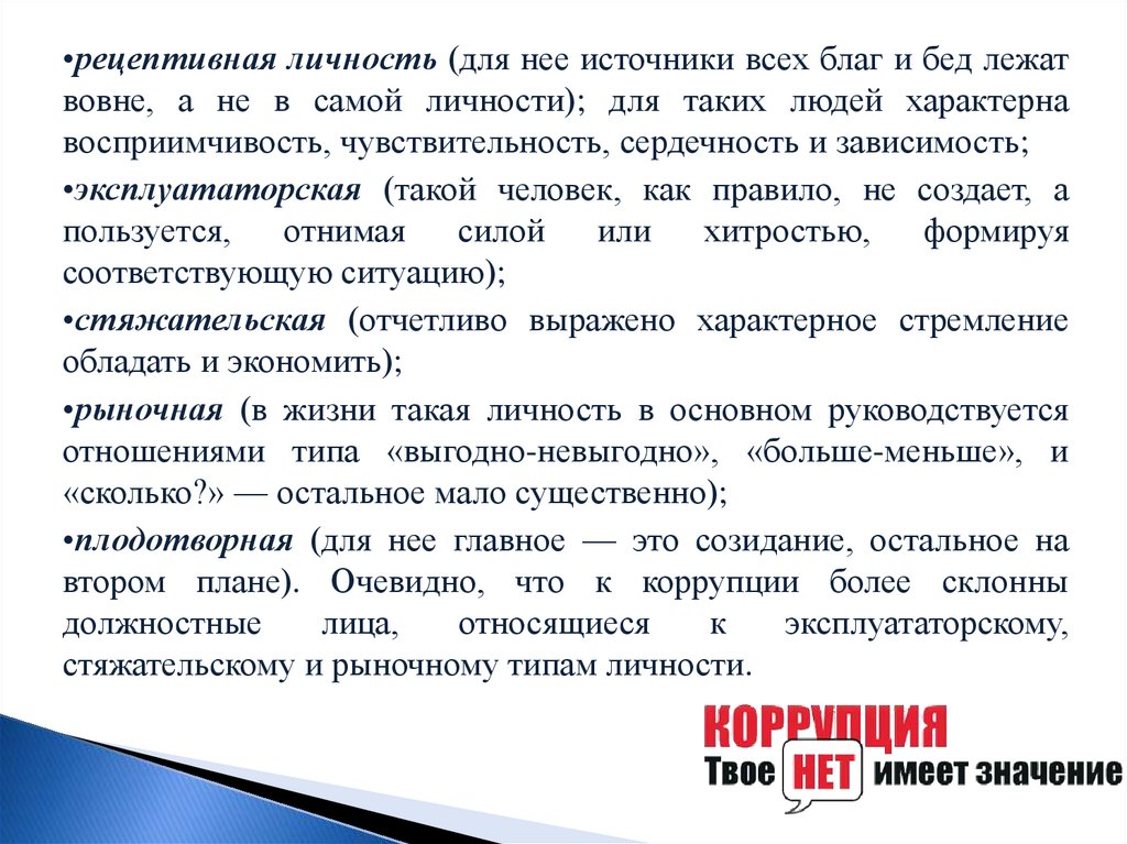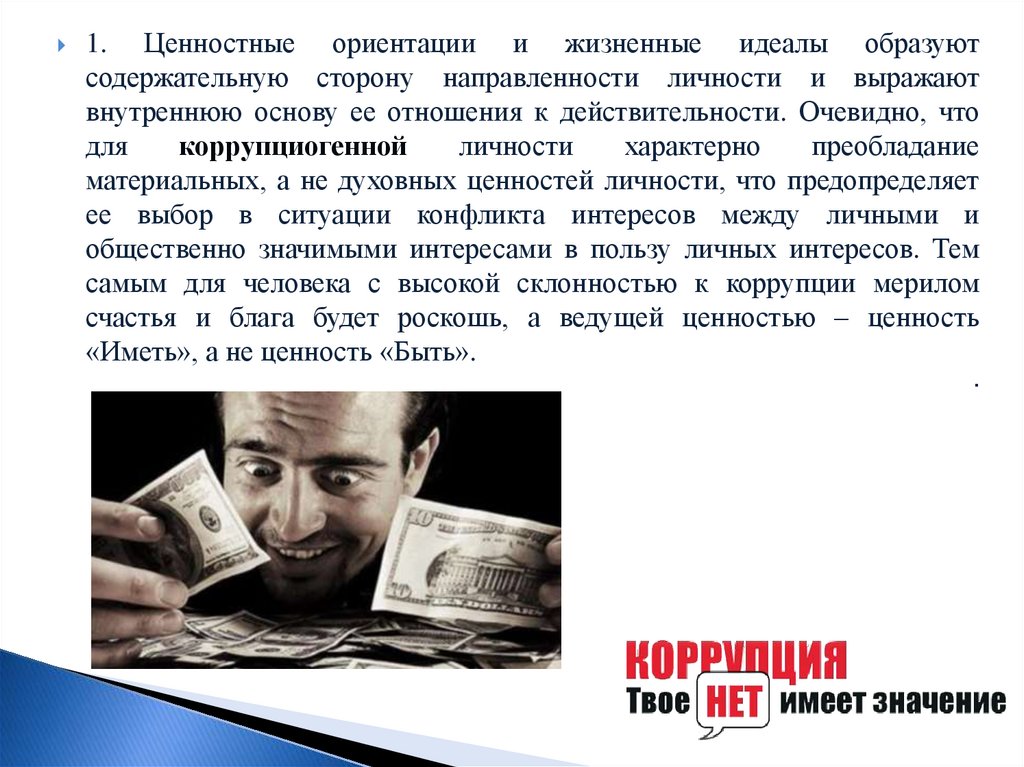4. коррупция – только в ее последствиях правовая и экономическая проблема, а исходно – сугубо психологическая и общечеловеческая