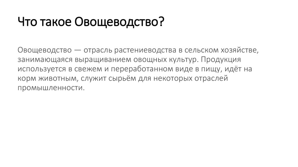 Что такое Овощеводство?Овощеводство — отрасль растениеводства в сельском хозяйстве,