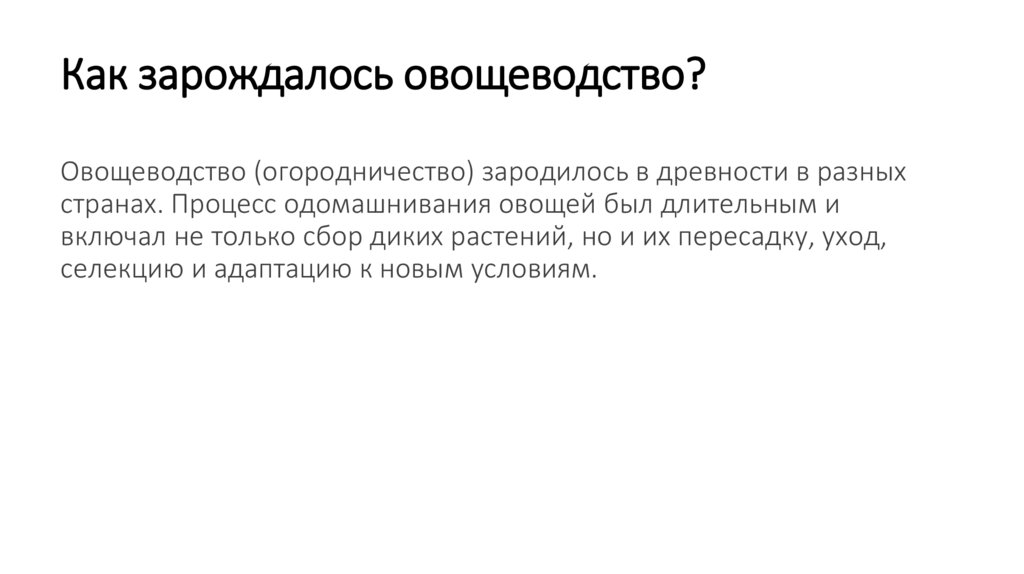 Как зарождалось овощеводство?Овощеводство (огородничество) зародилось в древности в разных