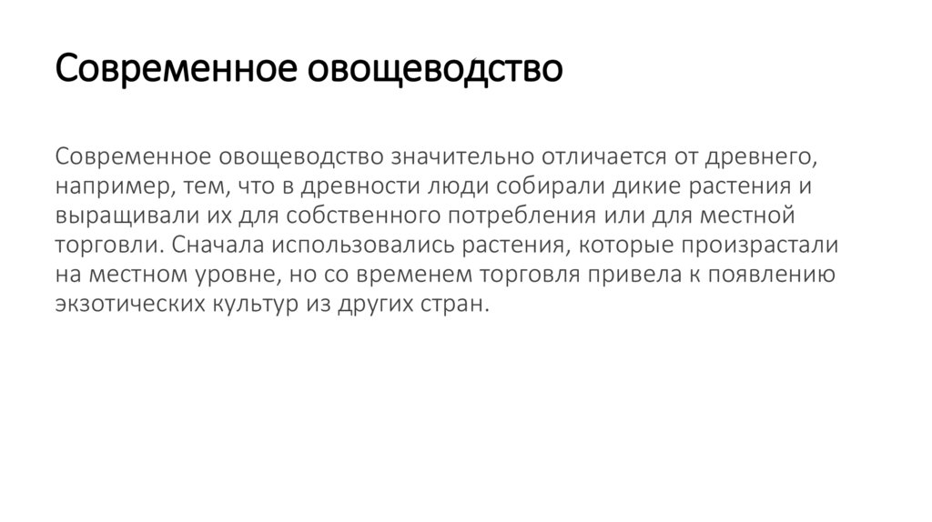 Современное овощеводствоСовременное овощеводство значительно отличается от древнего,