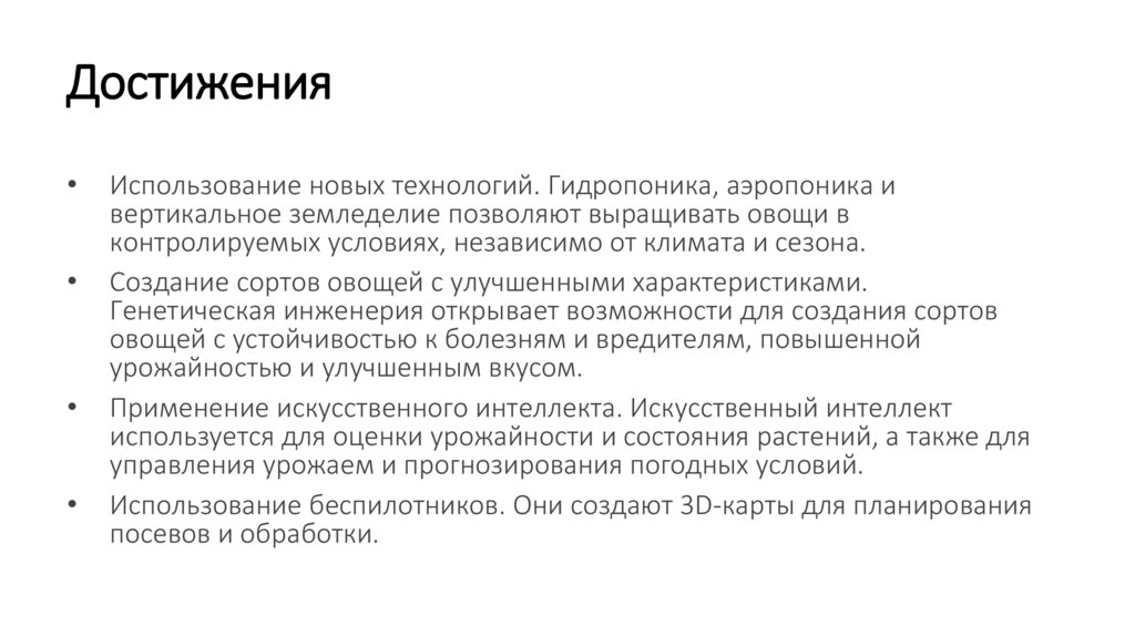 ДостиженияИспользование новых технологий. Гидропоника, аэропоника и