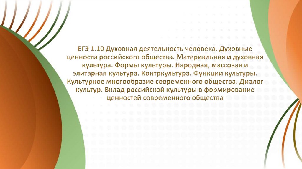 1. ЕГЭ 1.10 Духовная деятельность человека. Духовные ценности российского общества. Материальная и духовная культура. Формы