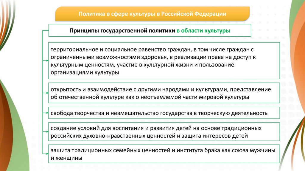 Политика в сфере культуры в Российской ФедерацииПринципы государственной политики в области культуры