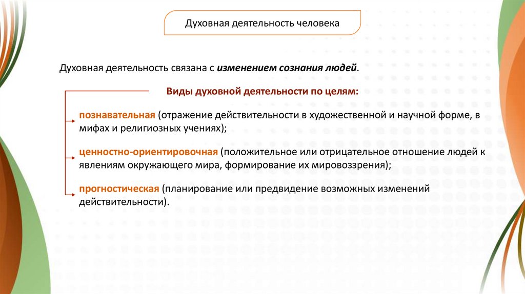 Духовная деятельность человекаДуховная деятельность связана с изменением сознания людей.