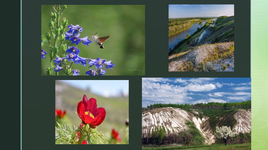 водоразделами, лощинами и лесостепными зонами. Это самый живописный участок заповедника