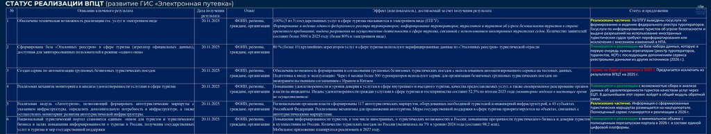 СТАТУС РЕАЛИЗАЦИИ ВПЦТ (развитие ГИС «Электронная путевка»)№