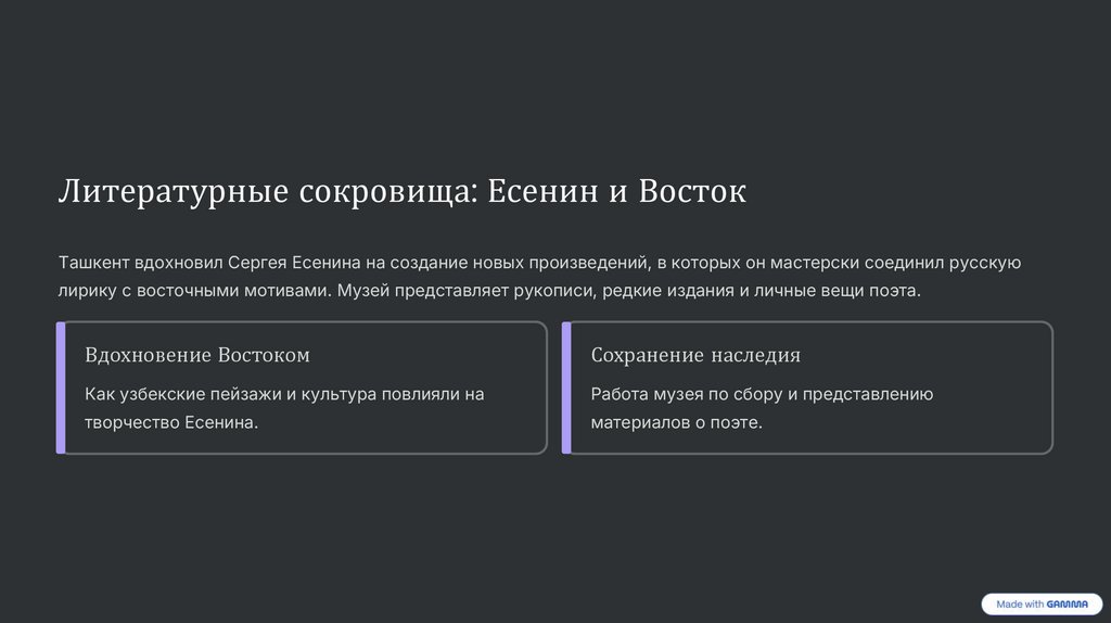 Литературные сокровища: Есенин и ВостокТашкент вдохновил Сергея Есенина на создание новых произведений, в которых он мастерски соединил русскую