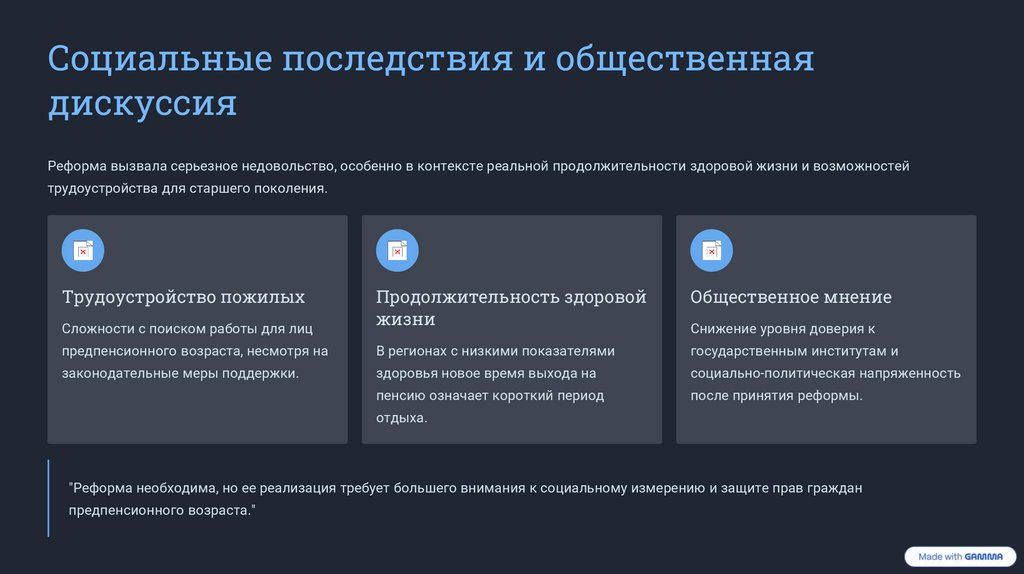 Реформа вызвала серьезное недовольство, особенно в контексте реальной продолжительности здоровой жизни и возможностей