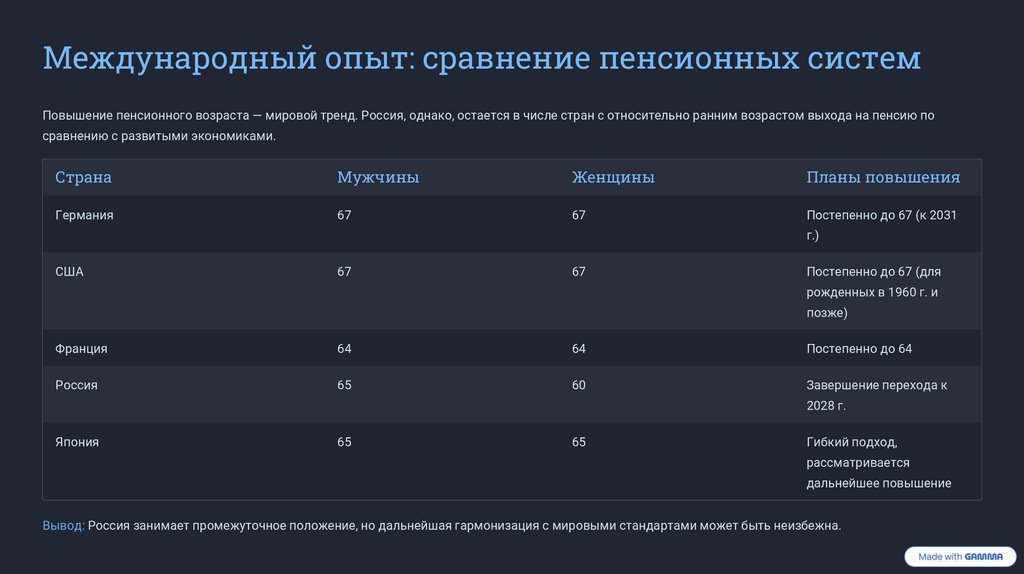 Международный опыт: сравнение пенсионных системПовышение пенсионного возраста — мировой тренд. Россия, однако, остается в числе стран с относительно ранним возрастом выхода на пенсию по