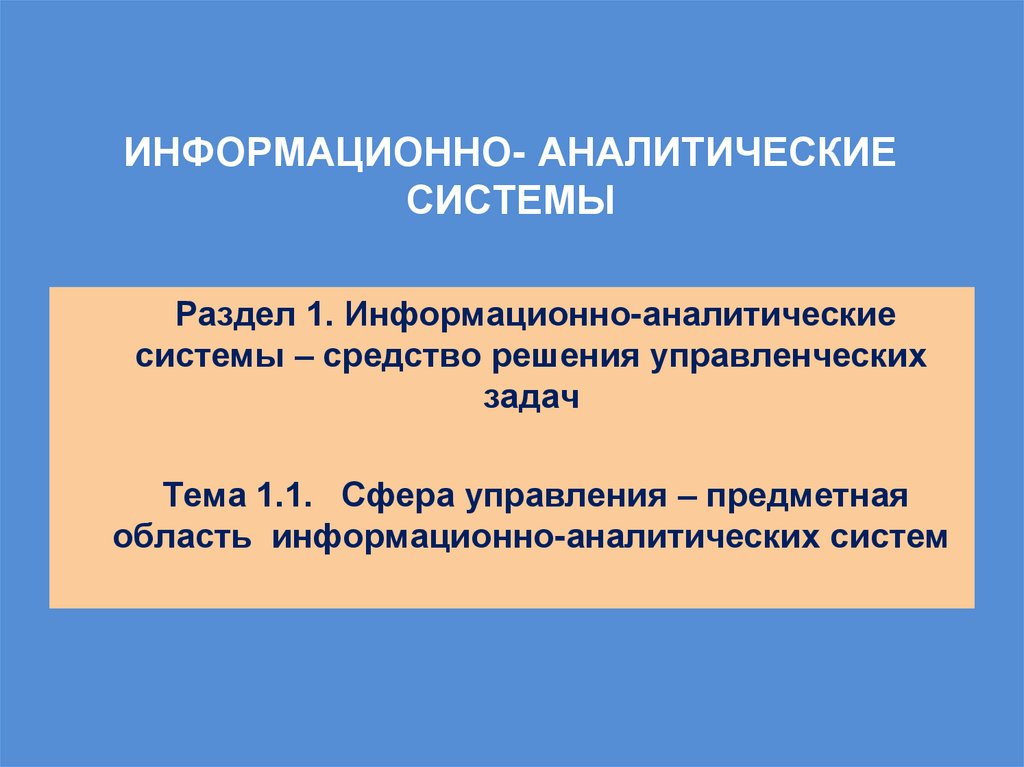 ИНФОРМАЦИОННО- АНАЛИТИЧЕСКИЕСИСТЕМЫ