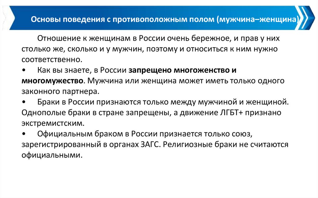 Основы поведения с противоположным полом (мужчина–женщина)Отношение к женщинам в России очень бережное, и прав у них