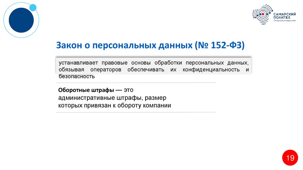 Закон о персональных данных (№ 152-ФЗ)устанавливает правовые основы обработки персональных данных,