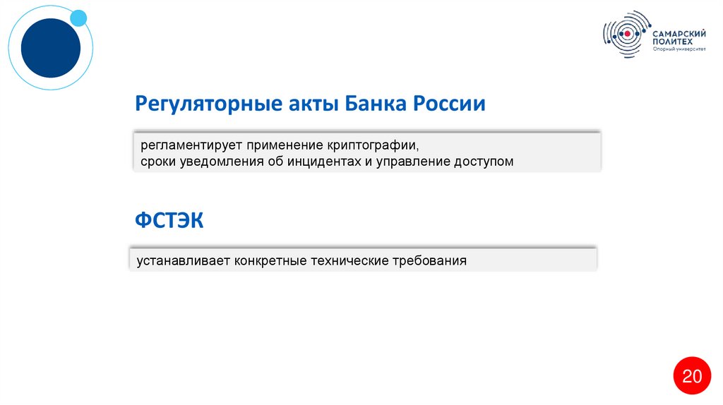 Регуляторные акты Банка Россиирегламентирует применение криптографии,