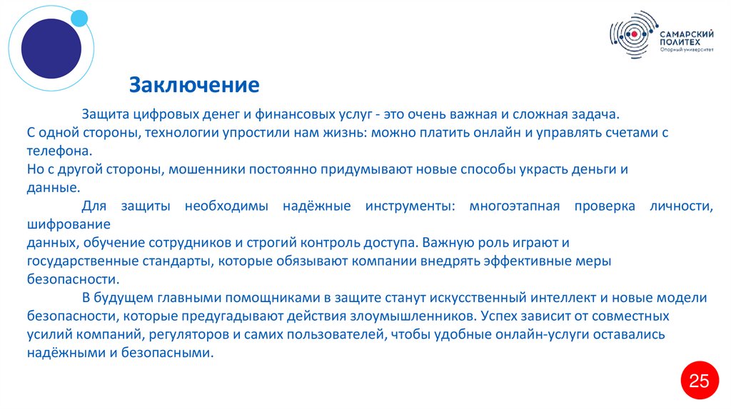 ЗаключениеЗащита цифровых денег и финансовых услуг - это очень важная и сложная задача.